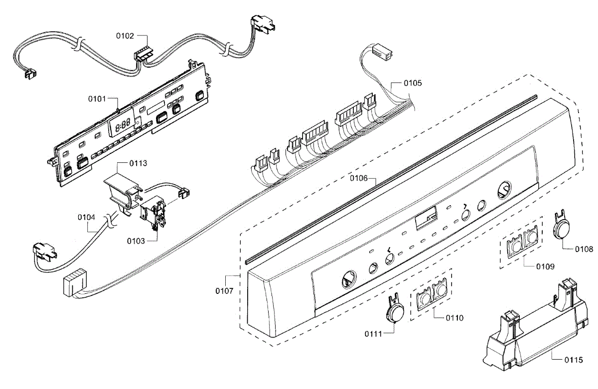 Wire harness for dishwashers. Connects electrical components throughout the appliance frame. Replace if wires are frayed, damaged, or disconnected.