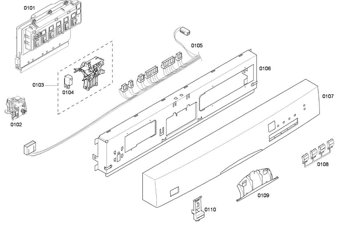Structural frame that supports the dishwasher user interface and front fascia. Replace if cracked, warped, or broken clips cause the console to separate.