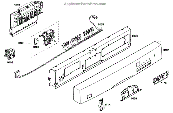 The Control Panel is an OEM part for Bosch dishwashers. Located at the top of the dishwasher door, the control panel includes push buttons and digital displays to allow for programming cycles, adjusting settings, monitoring status, and starting/stopping the unit.