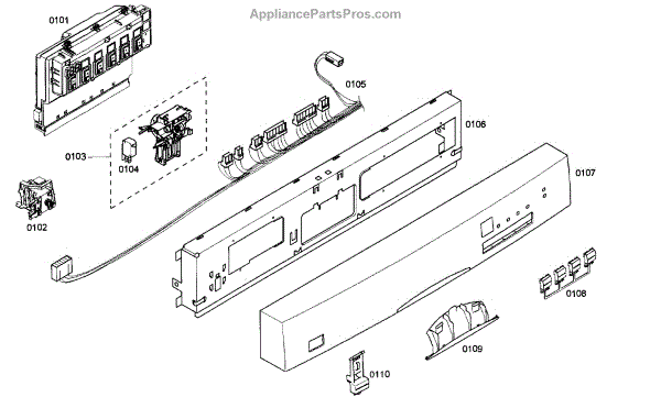 The Control Panel is an OEM part for Bosch dishwashers. Located at the top of the dishwasher door, the control panel includes push buttons and digital displays to allow for programming cycles, adjusting settings, monitoring status, and starting/stopping the unit.