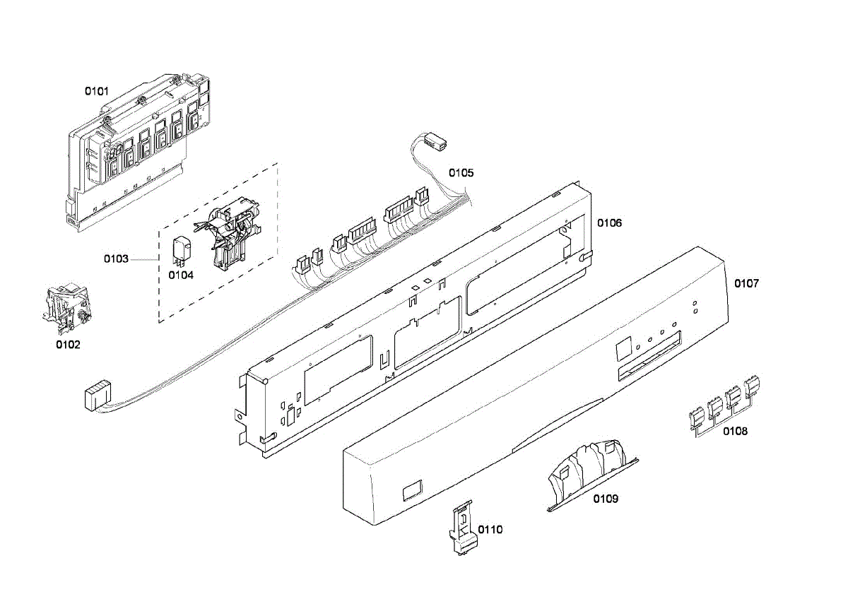 Structural frame that supports the dishwasher user interface and front fascia. Replace if cracked, warped, or broken clips cause the console to separate.
