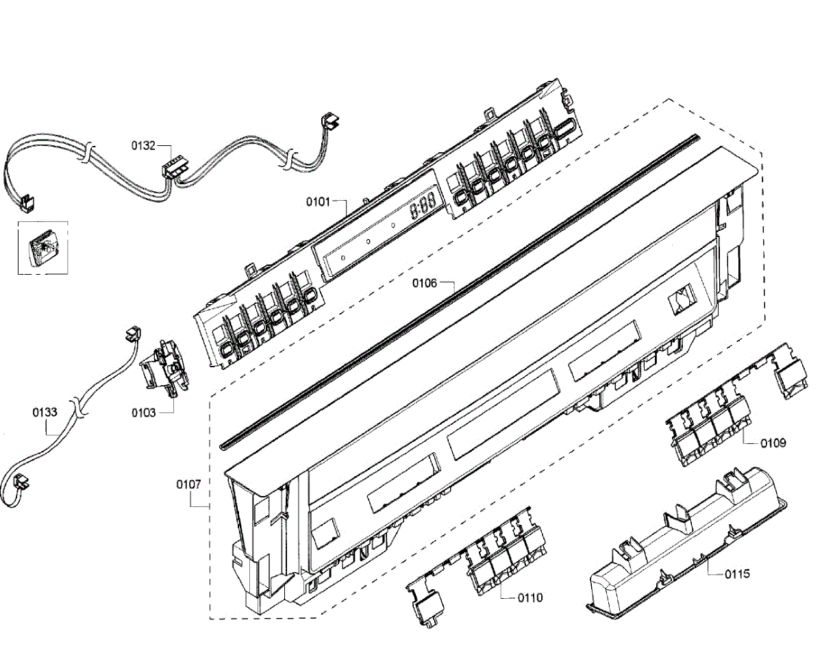 The Control Unit is an OEM part for Bosch dishwashers. It contains the electronic components responsible for operating and monitoring all dishwasher functions and cycles.
