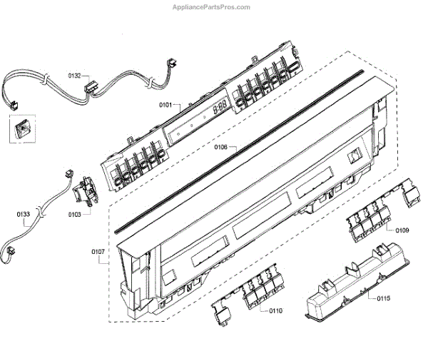 The Control Unit is an OEM part for Bosch dishwashers. It contains the electronic components responsible for operating and monitoring all dishwasher functions and cycles.