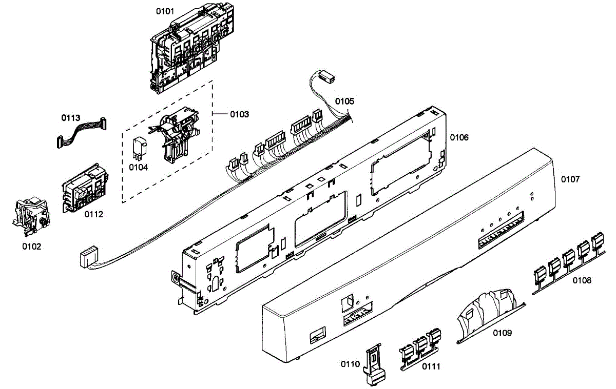 Structural frame that supports the dishwasher user interface and front fascia. Replace if cracked, warped, or broken clips cause the console to separate.