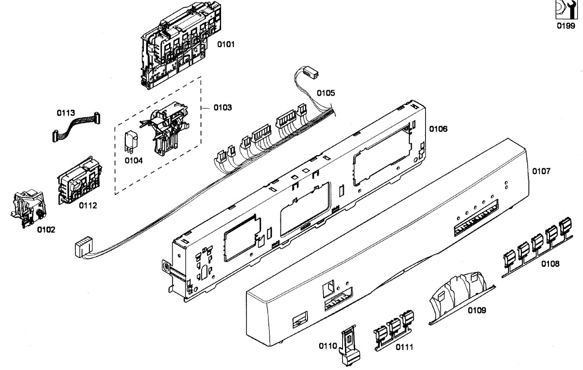 Structural frame that supports the dishwasher user interface and front fascia. Replace if cracked, warped, or broken clips cause the console to separate.