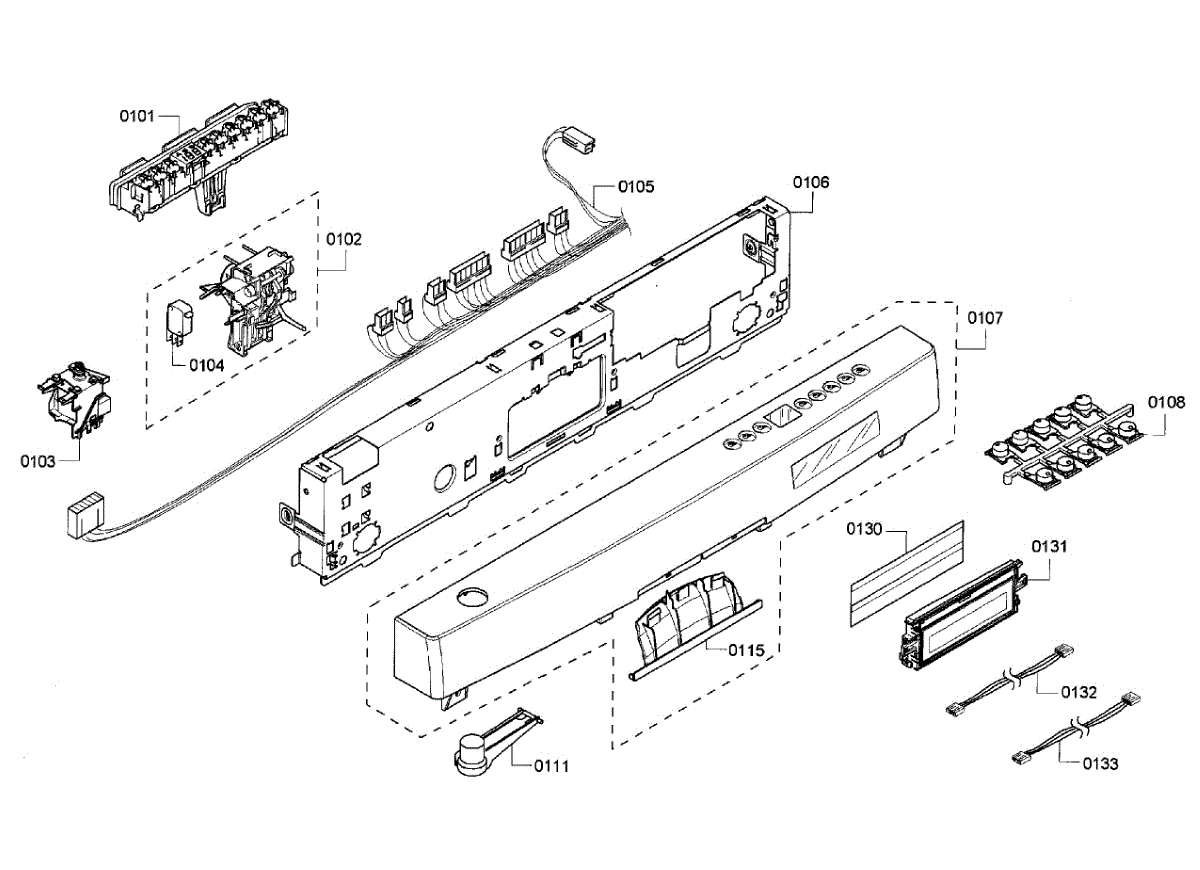 Cable harness for dishwasher door control panel. Replaces damaged, frayed, or corroded wiring harness. Restores electrical connections between components.