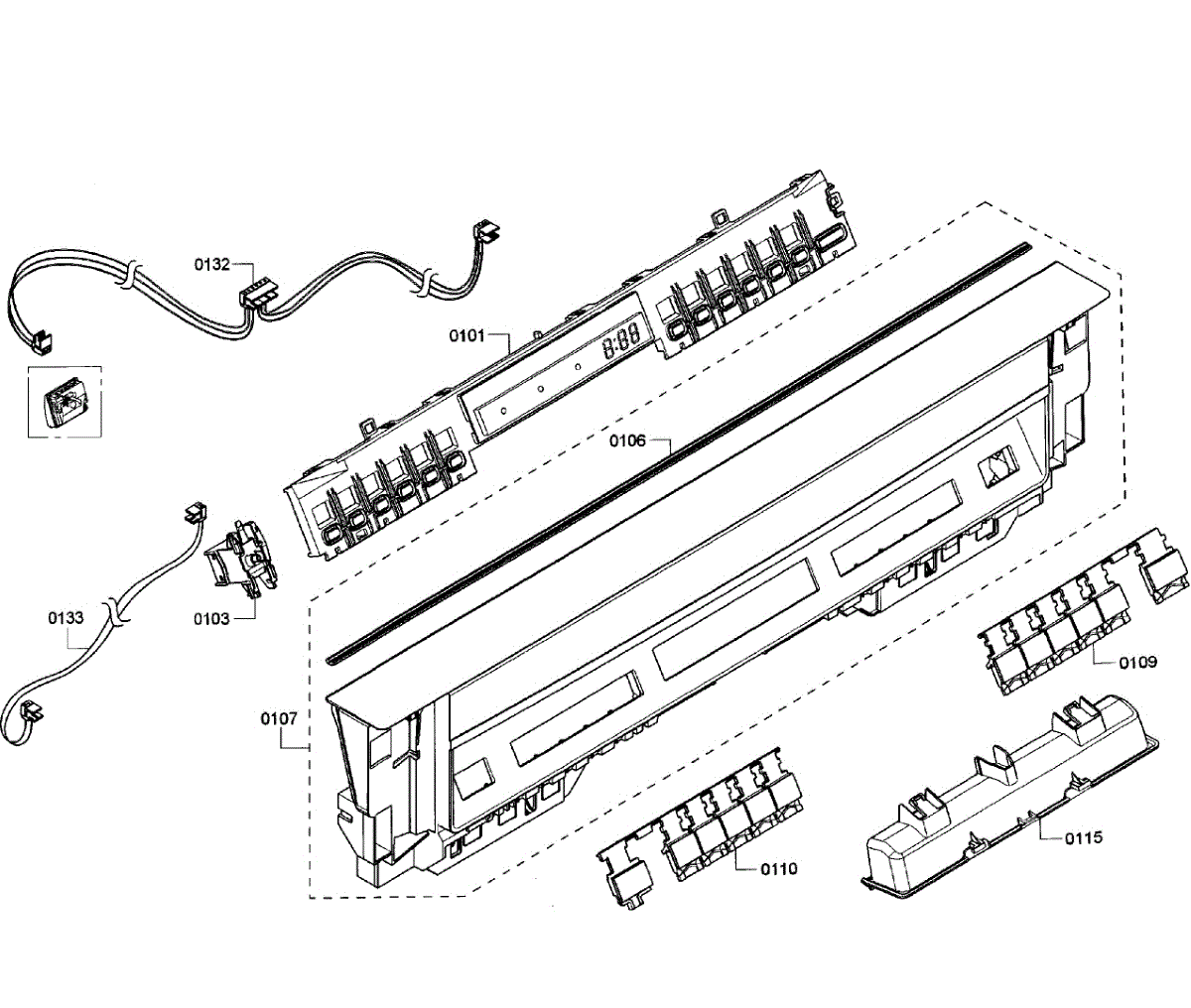 The Control Unit is an OEM part for Bosch dishwashers. It contains the electronic components responsible for operating and monitoring all dishwasher functions and cycles.