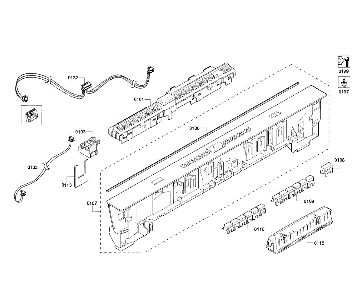 The Sealing is an OEM part for Bosch dishwashers. It serves as a protective barrier between the control panel and the internal components of the dishwasher, preventing moisture and dust from entering and causing damage.