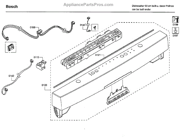 The Sealing is an OEM part for Bosch dishwashers. It serves as a protective barrier between the control panel and the internal components of the dishwasher, preventing moisture and dust from entering and causing damage.