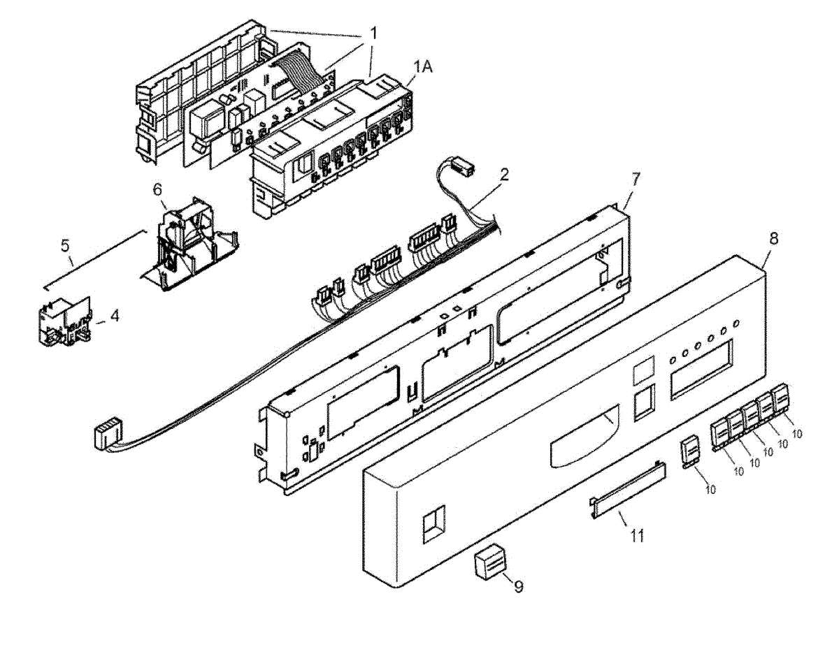 Replacement front cover for dishwasher control module. Needed when plastic is cracked, broken, or switch actuators are worn or missing. Protects control board.