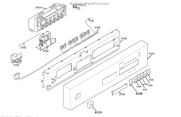 Made by Bosch. Common program control module for Bosch dishwashers SHU53/68. NOTE The manufacturer has redesigned the cover and indicator lights. Lights may be covered by the plastic case. You may have to remove the square covers over the indicator lights if needed. The same case is used for 6 and 8 indicator light models. They also no longer use the red bulb indicator lights, small surface mounted lights are used instead. If you require the Jumper Wire that goes with certain models, the part number is 00167782.