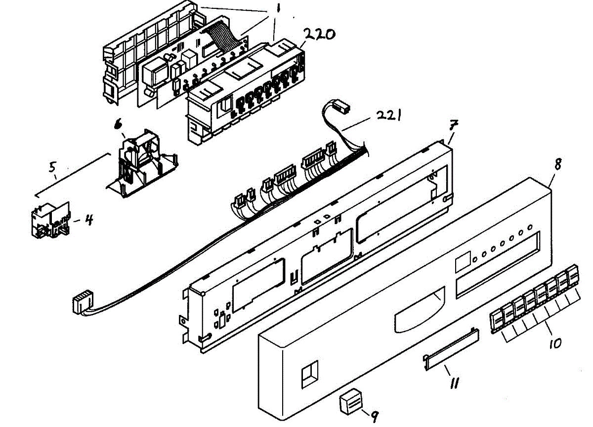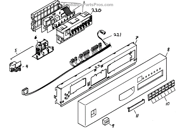 Replacement front cover for dishwasher control module. Needed when plastic is cracked, broken, or switch actuators are worn or missing. Protects control board.