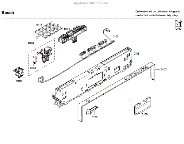 Replacement facia panel for dishwasher control area. Installs on front to cover controls. Needed when original is cracked, scratched, or discolored.