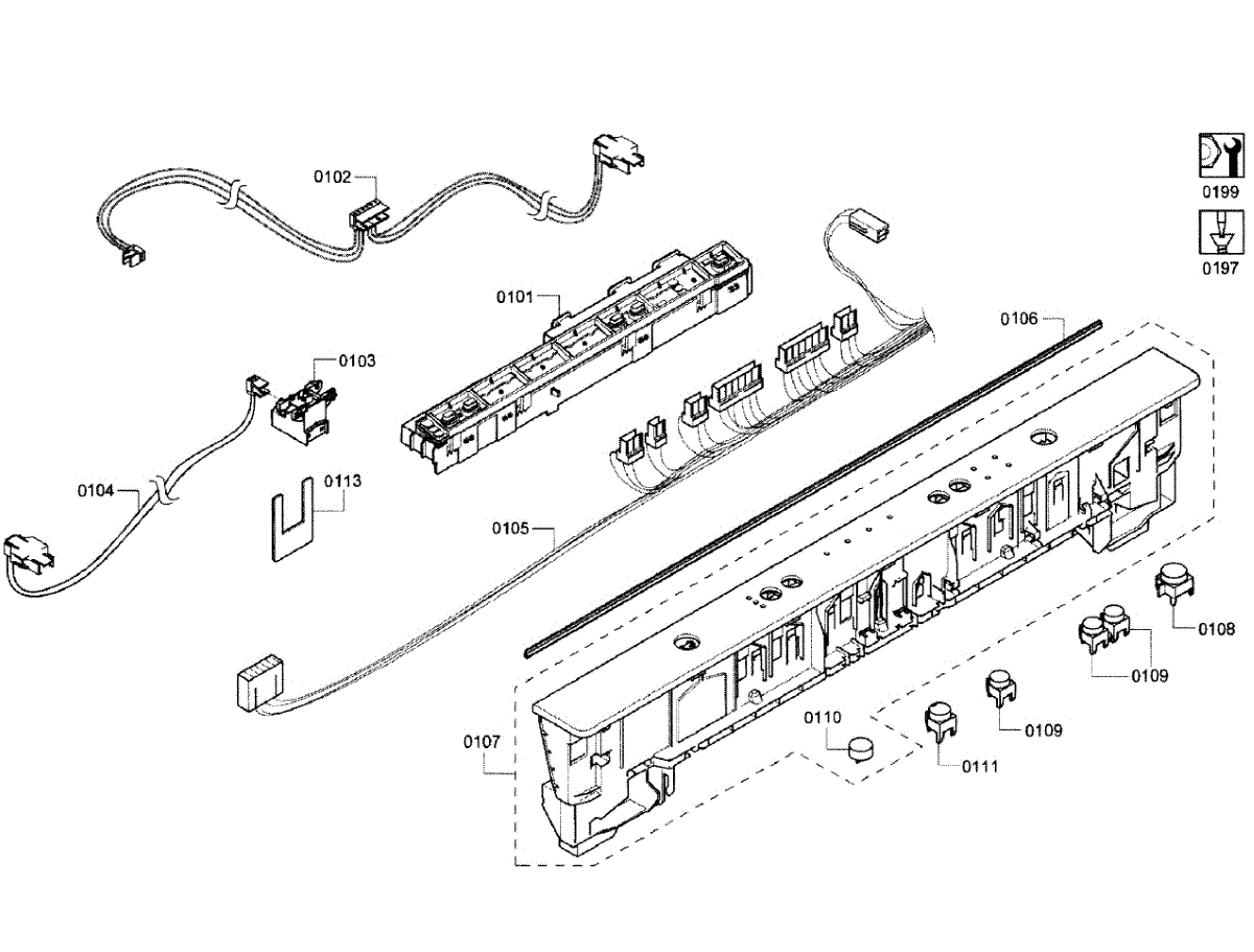 Wire harness for dishwashers. Connects electrical components throughout the appliance frame. Replace if wires are frayed, damaged, or disconnected.