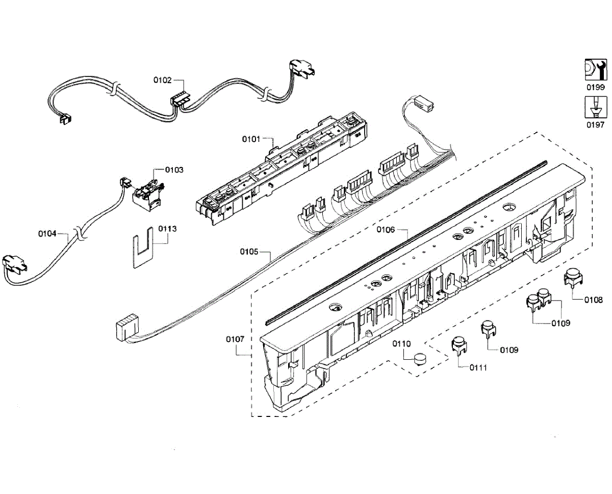 Wire harness for dishwashers. Connects electrical components throughout the appliance frame. Replace if wires are frayed, damaged, or disconnected.
