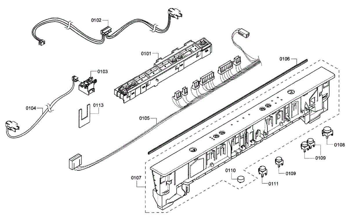 Wire harness for dishwashers. Connects electrical components throughout the appliance frame. Replace if wires are frayed, damaged, or disconnected.