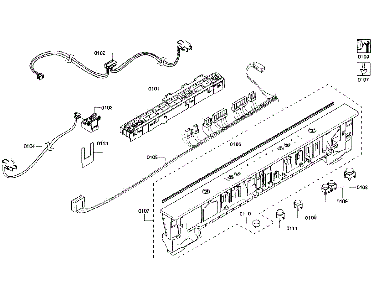 Wire harness for dishwashers. Connects electrical components throughout the appliance frame. Replace if wires are frayed, damaged, or disconnected.