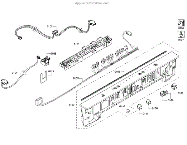 The control facia is responsible for the user interface, providing an intuitive way for users to start, pause, cancel, and select options for wash cycles. It incorporates durable membrane buttons and illuminated symbols for ease of use.