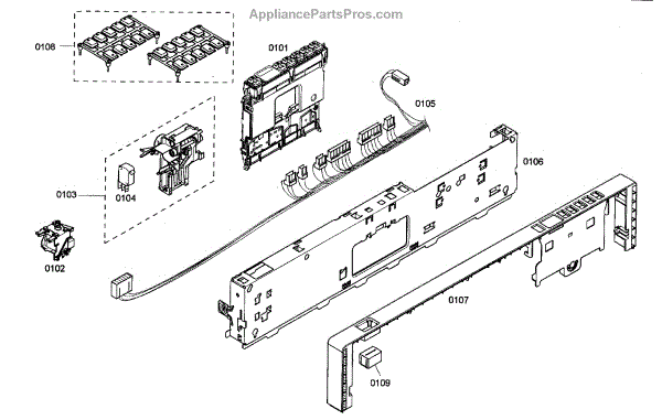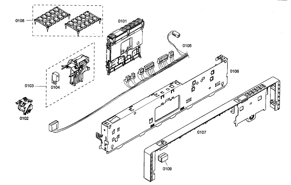 Cable harness for dishwasher control panel wiring. Replaces damaged, frayed, or corroded wiring harnesses. Essential for restoring connections.