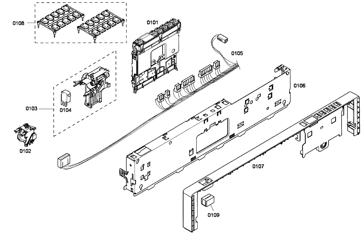 Cable harness for dishwasher control panel wiring. Replaces damaged, frayed, or corroded wiring harnesses. Essential for restoring connections.