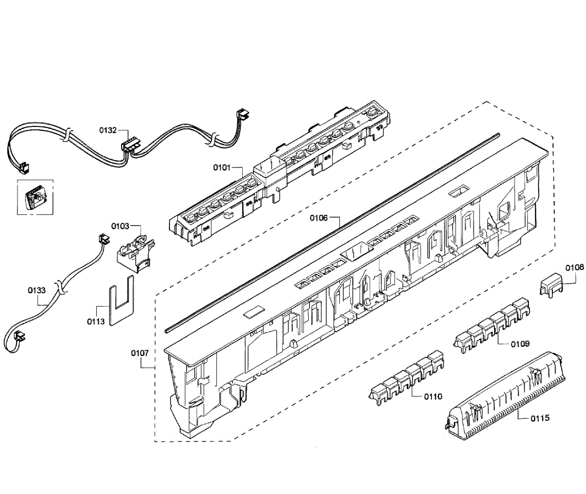 The Sealing is an OEM part for Bosch dishwashers. It serves as a protective barrier between the control panel and the internal components of the dishwasher, preventing moisture and dust from entering and causing damage.