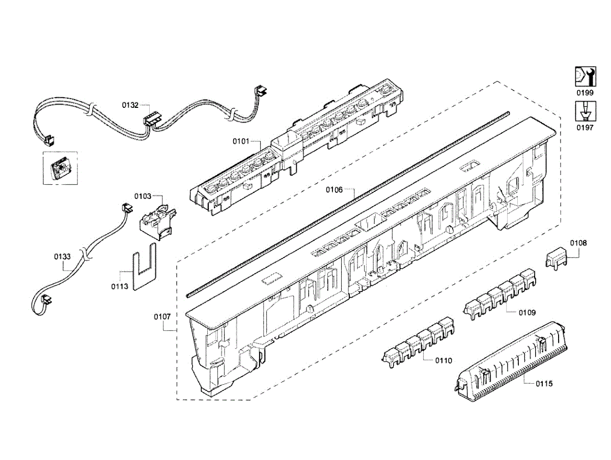 The Sealing is an OEM part for Bosch dishwashers. It serves as a protective barrier between the control panel and the internal components of the dishwasher, preventing moisture and dust from entering and causing damage.