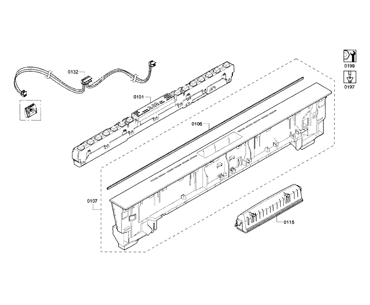 The Sealing is an OEM part for Bosch dishwashers. It serves as a protective barrier between the control panel and the internal components of the dishwasher, preventing moisture and dust from entering and causing damage.