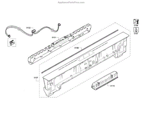 The Sealing is an OEM part for Bosch dishwashers. It serves as a protective barrier between the control panel and the internal components of the dishwasher, preventing moisture and dust from entering and causing damage.