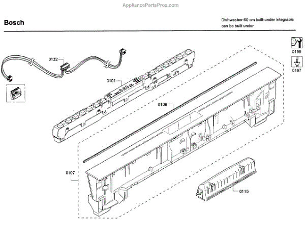 The Sealing is an OEM part for Bosch dishwashers. It serves as a protective barrier between the control panel and the internal components of the dishwasher, preventing moisture and dust from entering and causing damage.