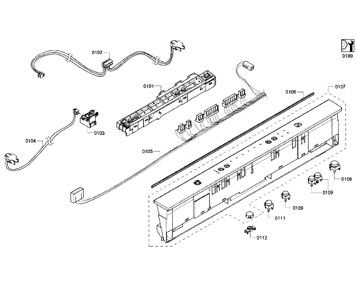 Fix dishwasher electrical issues with a new cable harness. Solves control panel failures, display problems, and function errors. Basic repair skill needed.