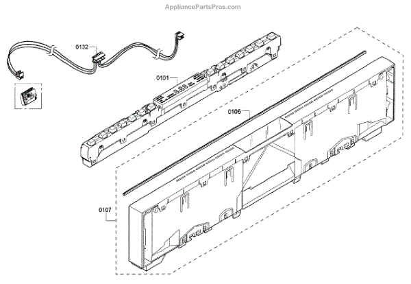 The Sealing is an OEM part for Bosch dishwashers. It serves as a protective barrier between the control panel and the internal components of the dishwasher, preventing moisture and dust from entering and causing damage.