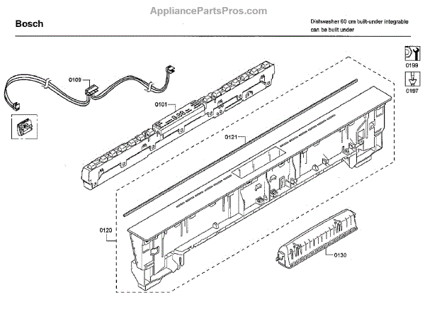 The Sealing is an OEM part for Bosch dishwashers. It serves as a protective barrier between the control panel and the internal components of the dishwasher, preventing moisture and dust from entering and causing damage.