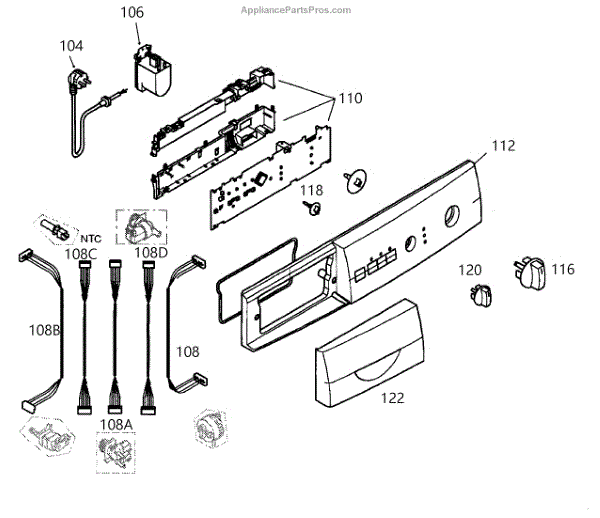 Wire harness assembly that connects the NTC temperature sensor in your washer. Replaces damaged, frayed, or corroded harness with burnt connectors.