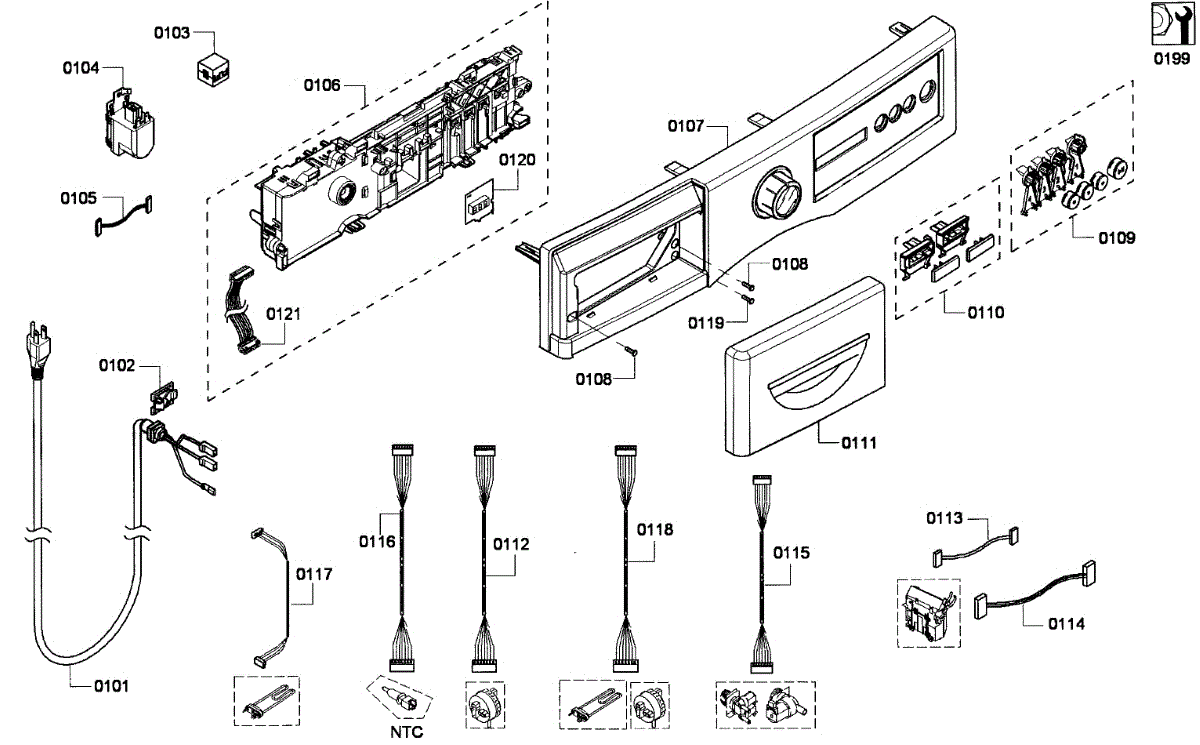 Fix washer electrical issues with this cable harness. Solves control panel malfunctions, display errors, and communication problems between components.