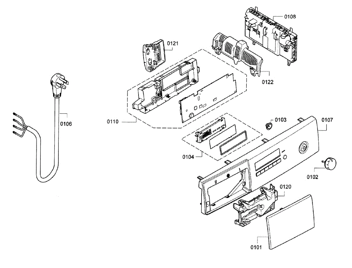 Outer trim cover for dryer control area. Replaces cracked, damaged, or worn facia panel. Restores finished appearance and protects controls.