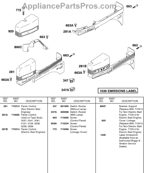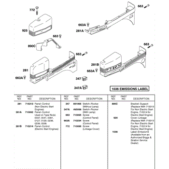 Parts for Briggs & Stratton 115432-0040-01: Control Panel Parts