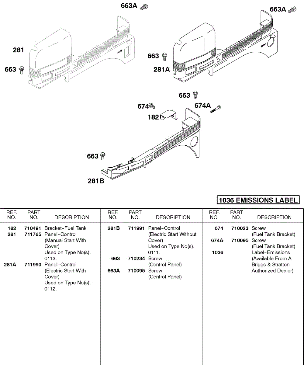 Parts for Briggs & Stratton 247437-0112-E1: Control Panel Parts