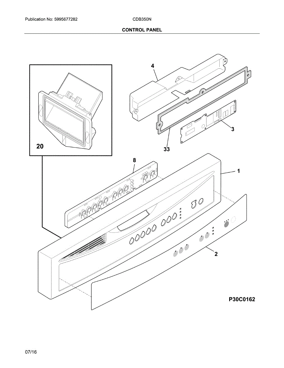 Black exterior fascia for the dishwasher control area. Replaces cracked, faded, or damaged panels to restore appearance and proper alignment.