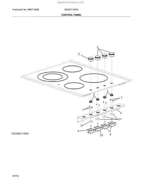 Burner not heating or stuck on? This surface element switch controls power to individual cooking elements. Moderate DIY repair requires lifting cooktop.