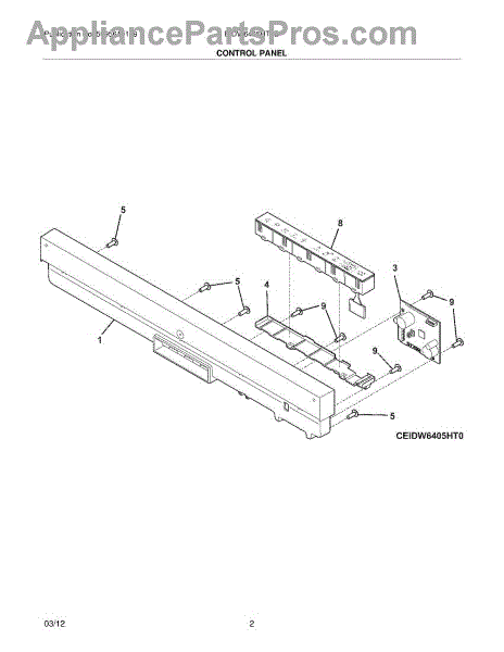 Parts for Electrolux EIDW6405HT1B: 03 - Control Panel Parts