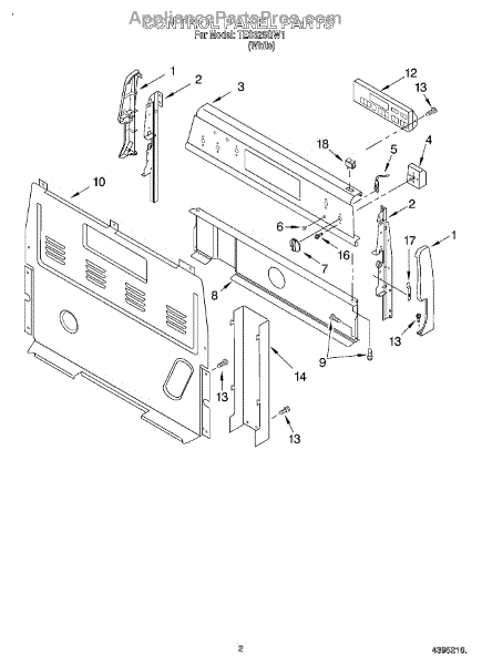 This upper electrical cover protects and conceals the appliance's control box and wiring, helping keep electrical components safe from dust and accidental contact. It restores a finished appearance and supports secure mounting of the console area. What it does: