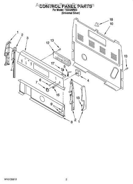 This factory screw secures appliance components to their mounting points. Replace missing, worn, or stripped hardware to restore a tight fit, proper alignment, and quieter operation across the affected assembly.