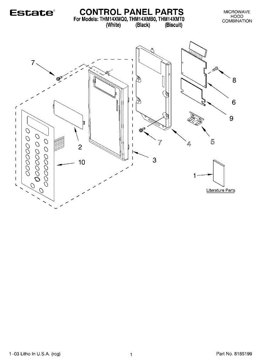Parts for Estate THM14XMB0: 01 - Control Panel Parts