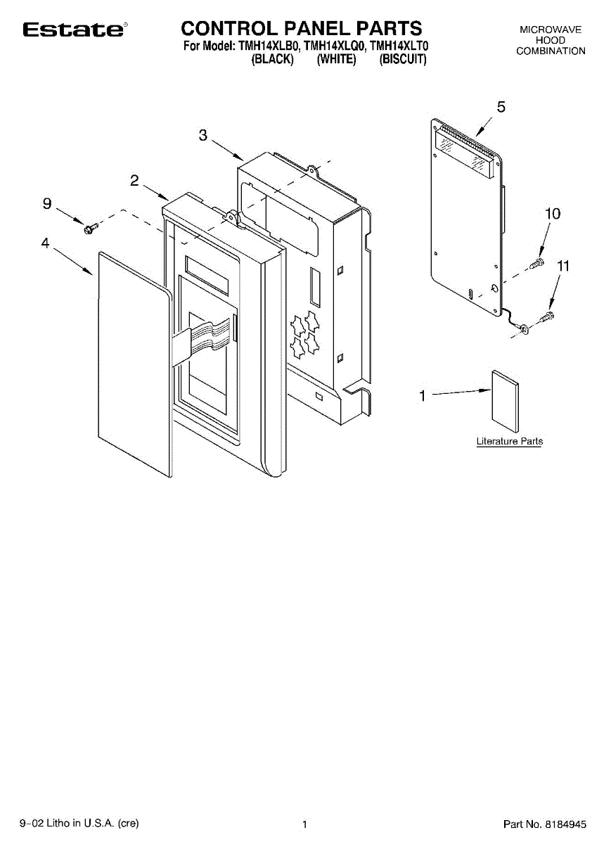 Parts for Estate TMH14XLB0: 01 - Control Panel, Literature Parts