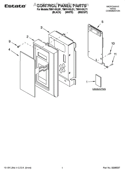 Parts for Estate TMH14XLT1: 01 - Control Panel Parts
