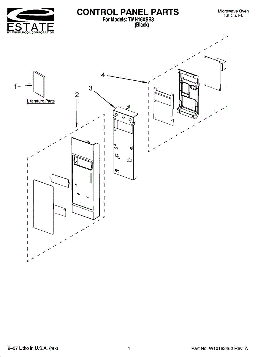 Parts for Estate TMH16XSB3: 01 - Control Panel Parts