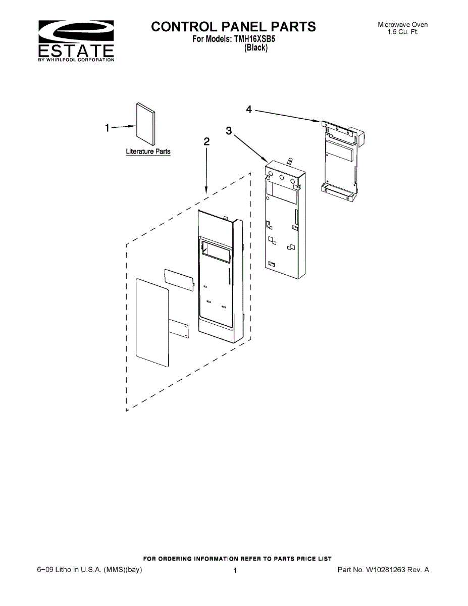 Parts for Estate TMH16XSB5: 01 - Control Panel Parts