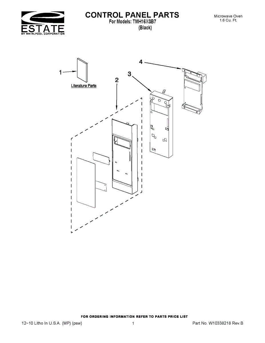 Parts for Estate TMH16XSB7: 01 - Control Panel Parts