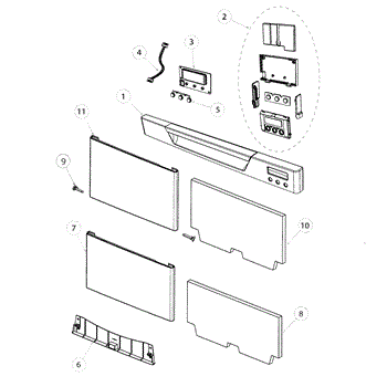 The door handle assembly is responsible for providing an easy grip that allows users to open the dishwasher door smoothly. It contains ergonomic handles that are designed for comfort and usability.
