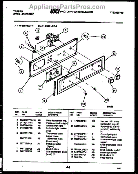 Parts for Frigidaire 11-1653-00-04: 03 - Control Panel Parts